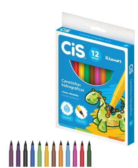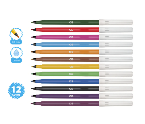 A Canetinha Hidrográfica CIS Lavável 12 Cores é perfeita para crianças, garantindo diversão com segurança e praticidade.