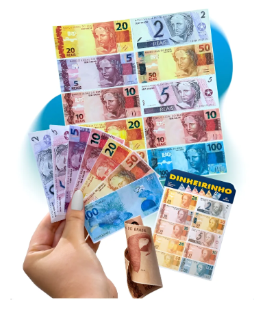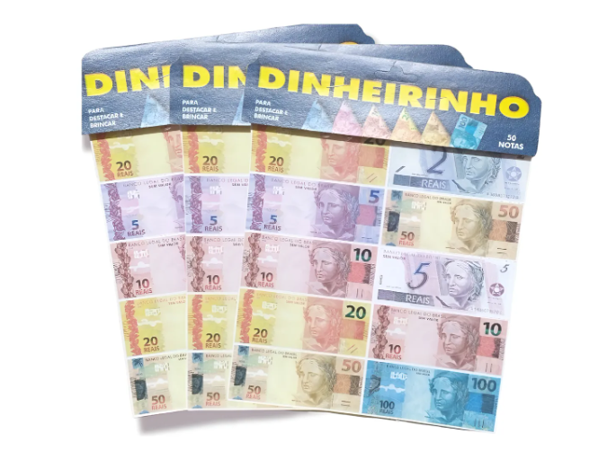 Ideal para uso em casa, escolas e atividades pedagógicas, o dinheirinho falso ajuda a desenvolver noções de valor, matemática básica e imaginação.