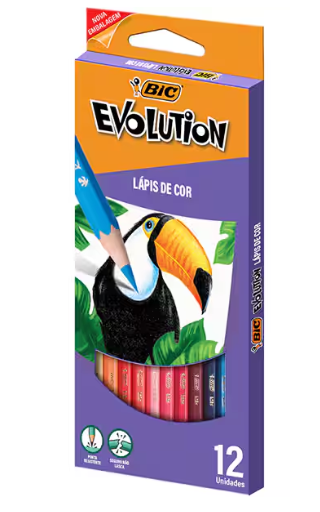 O Lápis de Cor Evolution BIC 12 Cores é perfeito para o uso escolar e para estimular a criatividade das crianças.