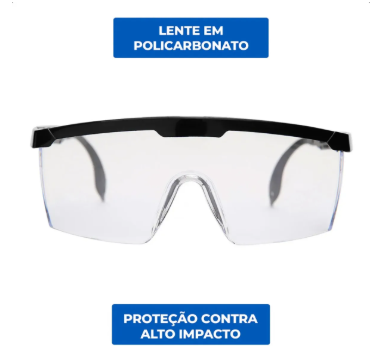 Óculos de laboratório para proteção ocular, ideal para atividades escolares, experimentos e uso educativo.